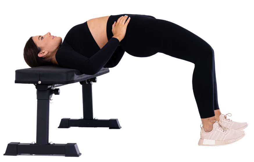 Single leg of b-stance hip thrusts → plaats één been slechts met de hak op de grond of ondersteun alleen met één been.